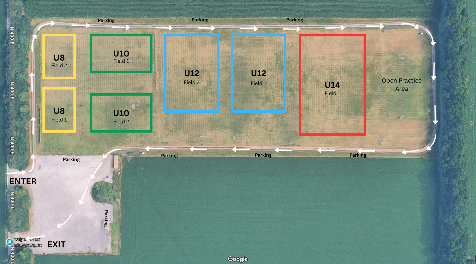 Valpo Soccer Club Field LayoutLocation: 250 N 400 E, Valparaiso IN 46383